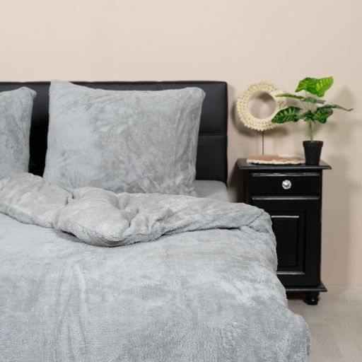 Het teddy dekbedovertrek grijs is aan beide kanten gemaakt van zachte teddy fleece. Deze stof heeft een warme, licht fluffy structuur en staat bekend om zijn comfortabele gevoel. De vezels zijn iets voller dan bij gewone fleece, waardoor de stof extra zacht aanvoelt.